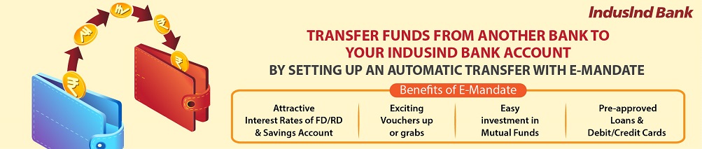 E-mandate will help you regularly maintain balance in your IndusInd Bank accounts and enjoy many benefits that come-along